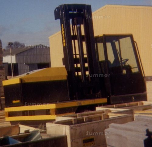1987: The picture below shows our Lansing side loader fork lift, which we purchased from new. It could unload long packs of timber from the narrow road outside our premises. It could also pick up or put down long packs within the yard or carry a pack into the factory and place it next to the cross cut saw.