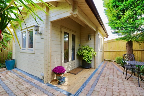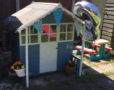 Summer house in situ in the corner of the garden.