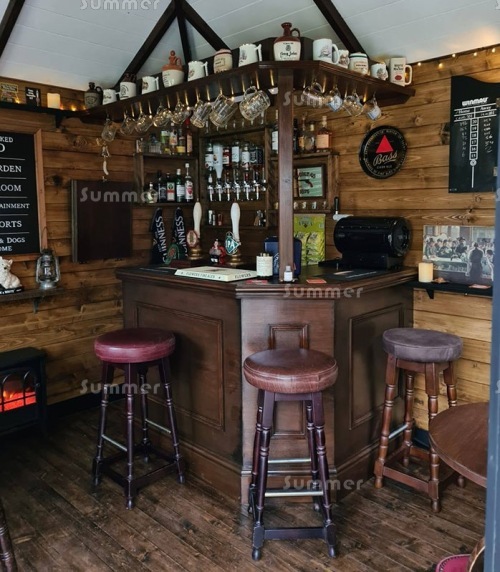 This exciting trend started during pandemic lockdowns when people could not go out, but it has developed into a stylish way to furnish your summerhouse or garden room. After all, a pub has everything you need to relax in - enough seating for the whole family, tables for dining plus a huge choice of drinks, all in a comfortable pub setting. You can sit at the bar or around a table, you can play darts or you can serve the drinks behind the bar.