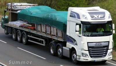 - The delivery vehicle is a large lorry with a truck mounted fork lift at the rear.
