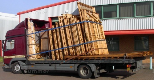 - The picture below shows one of the larger delivery vehicles, with the panels stored upright. It carries 10-12 timber buildings.