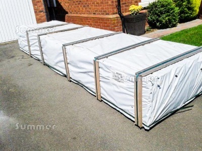 - If your order includes floor and roof insulation this can be also be placed on top of the pack. Insulation is the ideal material to protect timber components from strong sunlight.