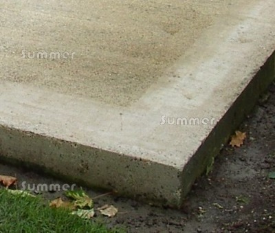 - The edges of the concrete base should be trowelled smooth to a width of around 6" or 150mm wide on all sides. The edges should be slightly chamferred by a few millimetres to discharge rainwater. The edges should be flat enough to support the wallls but sloping enough to drain water away.