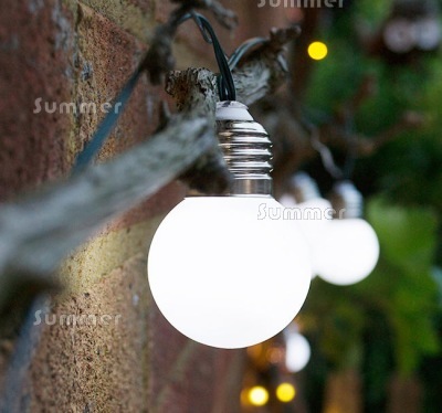 PICTURE: Solar powered string lights with large bulbs.