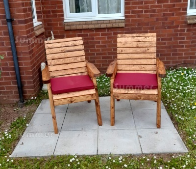 - 2 armchairs with slatted seats and backs