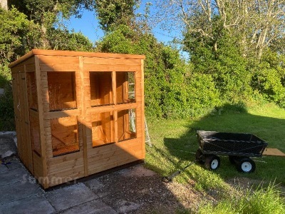 SIZES - DEPTH AND WIDTH: Sizes are sometimes rounded to the nearest nominal size for ease of reading but the correct external wall sizes are listed alongside the price. The first dimension listed is the depth and the second dimension is the width. The depth refers to the sloping wall. The sizes listed are the external wall sizes. These sizes do not include the roof overhang. Many other suppliers quote the overall roof size which is much larger. All sizes are approximate.