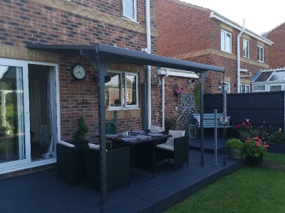 - Tinted 6mm thick twinwall polycarbonate roof