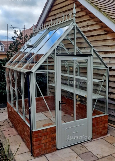 POWDER COATED ALUMINIUM: The powder coated finish is more attractive than the stark silver finish aluminium greenhouses. The tough finish also has excellent weathering properties and retains its gloss and colour superbly. A good example of powder coating is the finish on your washing machine. Powder coated aluminium greenhouses have a similar finish.