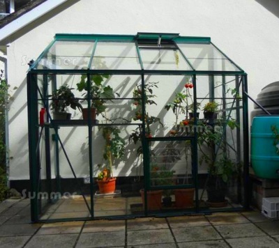 POWDER COATED ALUMINIUM: The powder coated finish is more attractive than the stark silver finish aluminium greenhouses. The tough finish also has excellent weathering properties and retains its gloss and colour superbly. A good example of powder coating is the finish on your washing machine. Powder coated aluminium greenhouses have a similar finish.