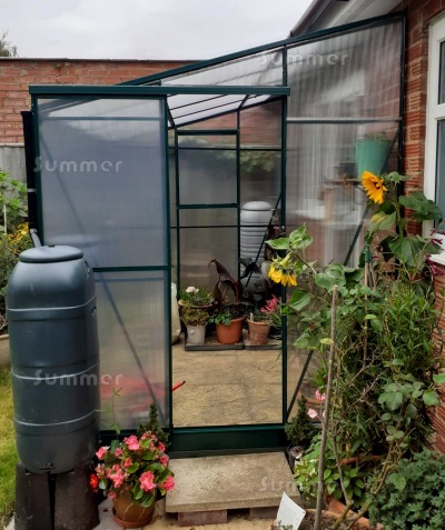 - Strong aluminium greenhouse frame in a powder coated green finish