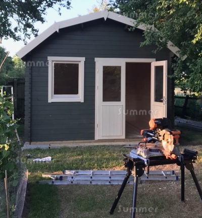 NATURAL WOOD: First, high grade timber is dried in kilns until it reaches the optimum moisture content, then it is planed smooth and machined into tongued and grooved logs and boards. Next the logs are precisely machined at the ends to ensure a precise fit. Finally, each cabin is carefully packed and wrapped. When you unwrap it the wood is untreated. We recommend treating it only after the cabin has been successfully installed and ideally within a week or two. Treating the logs before fitting may cause the wood to swell up and the logs may not fit together correctly. If you are fitting your cabin in a restricted space where future access will be difficult you can stain the logs during installation by reaching down a few logs at a time as you fit them.