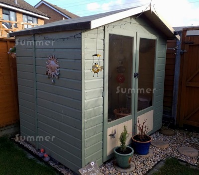 • All summerhouses include immersion treatment in light brown preservative. Further treatment is recommended soon after installation
